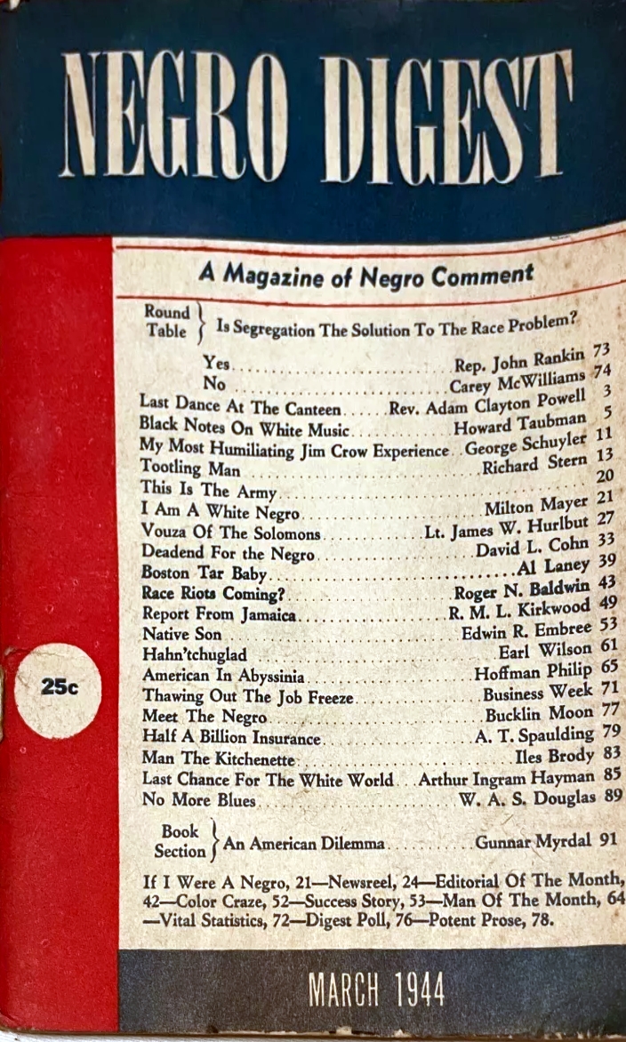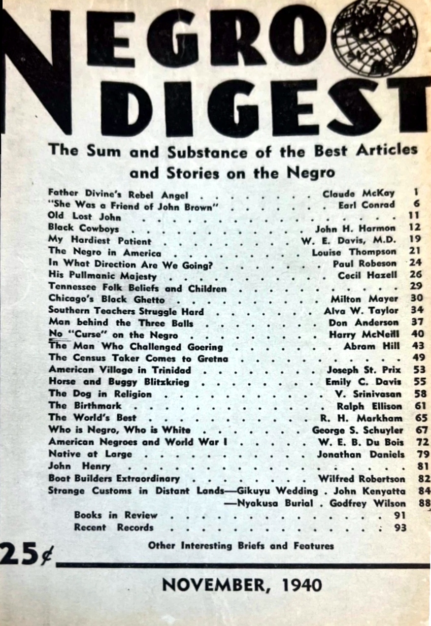 - Negro Digest Sum & Substance, NY Nov 1940