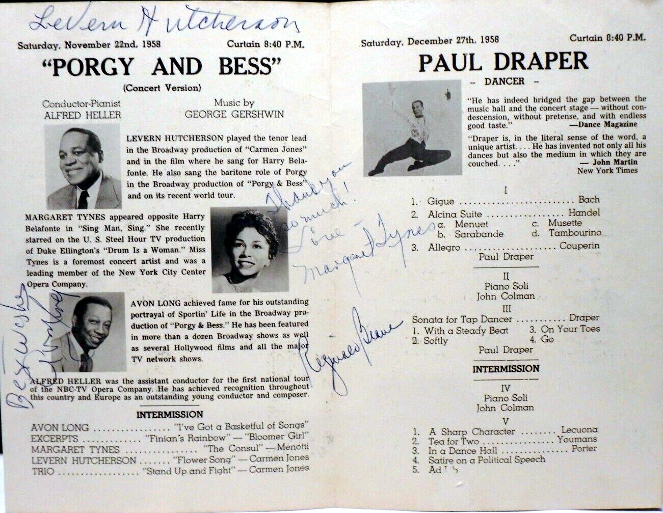 - 1958 PORGY AND BESS AFRICAN AMERICAN CAST AUTOGRAPH PROGRAM TYNES LONG HUTCHERSON