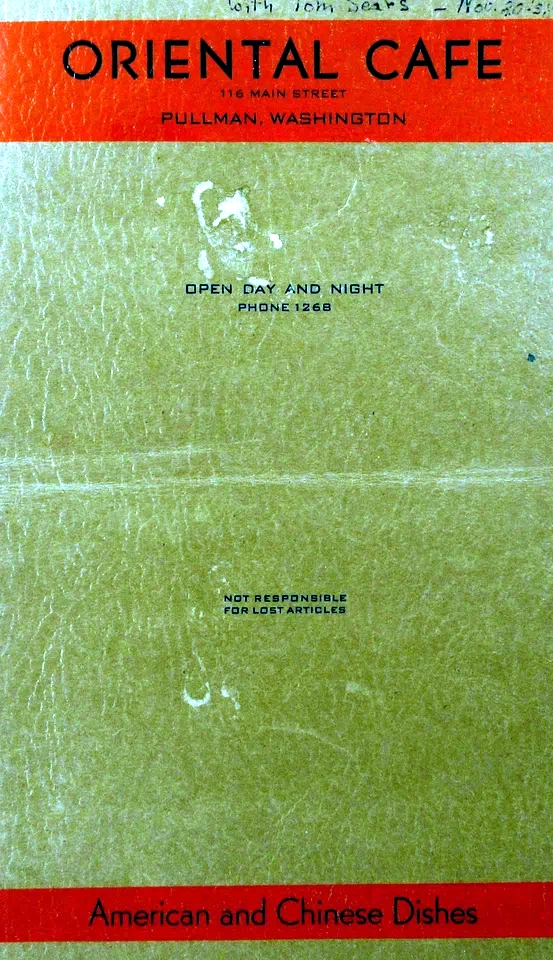 KIANG NAM CAFE CHINESE DISHES 674 KING ST SEATTLE WA 1940’s menu