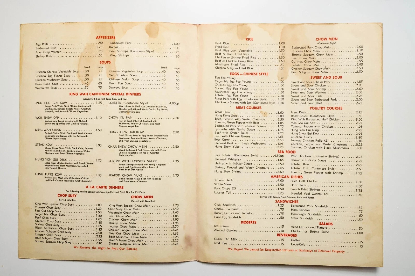 King Wah Menu 1960’s Chicago Chinatown -2